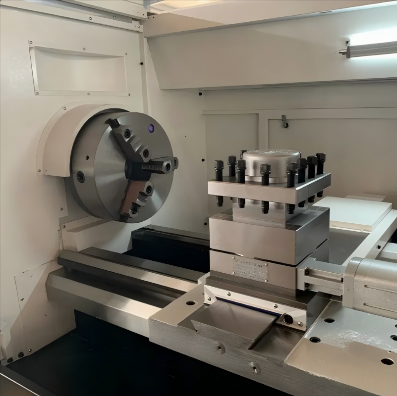 Tool post: 4 stations (6/8 optional), compatible with 25×25 mm shanks. X/Z rapid traverse: 6/8 m/min, minimum setting unit 0.001 mm for high precision control.